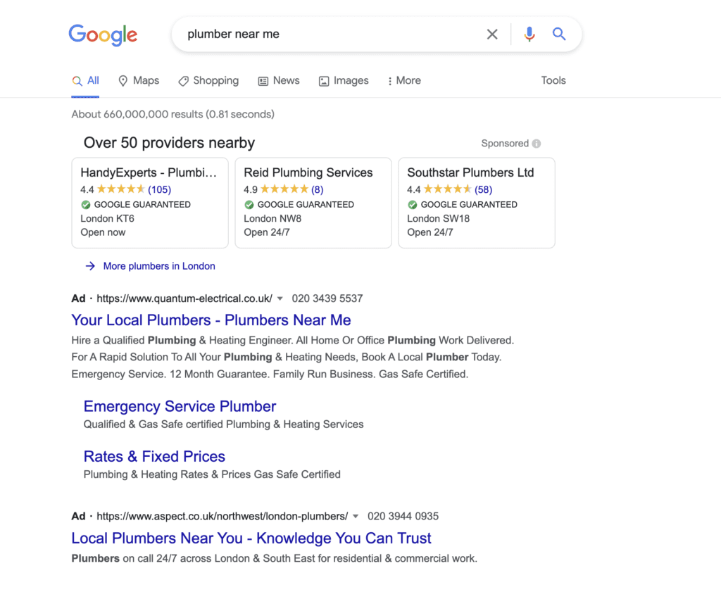 Google’s Local Services Ads put you at the very top of search results — above regular ads, above organic listings. You only pay when a real customer calls or messages you. No clicks. No impressions. Actual leads.